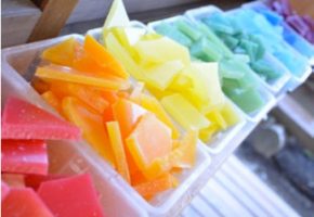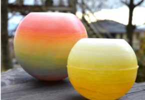 優しいゆらぎのレインボーランタン作り&海を望む非日常のひと時♪ 10色以上のパラフィンワックスで作るレインボーランタン。 広大な海と大室山を望むロケーションで、世界に一つのキャンドル制作体験♪